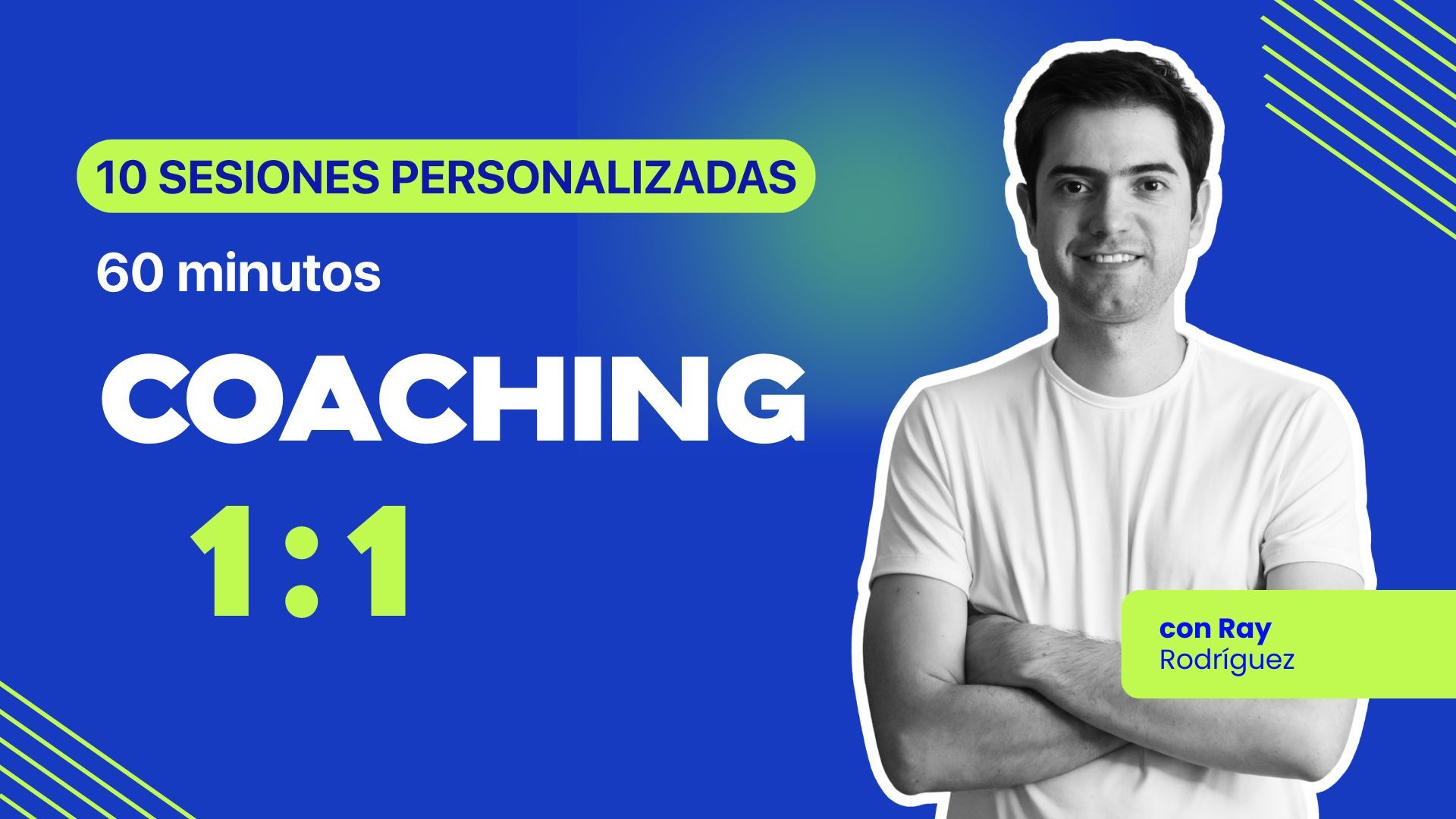 10 sesiones 1 a 1 en vivo (60 minutos cada una) con Ray Rodríguez vía videollamada.